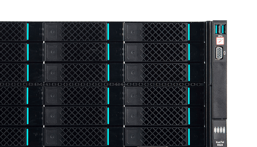 KunTai R524 存储型服务器是c7c7娱乐数码基于鲲鹏处理器推出的新一代 ARM数据中心服务器。。。。主要面向存储业务,,,具有海量存储、、、、高性能、、、、低功耗以及易扩展的特点,,,适合为大数据分析、、软件定义存 储等应用场景的工作负载进行髙效加速。。